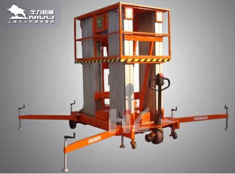 牛力三桅柱铝合金升降平台: 三组桅柱支撑作业平台同步升降,支退结构同单桅柱式平台,具有超大的载重量和优秀的工作稳定性。整体升降式护栏装置,强度好,运输时大幅度地降低整机高度,装卸十分方便,通过一次升降即可完成装配或拆卸。该升降机承载能力强,适合于两人(可携带一定的重量工具和材料)同时登高作业;还可根据不同环境订制成各种非标产品,以满足不同需要。